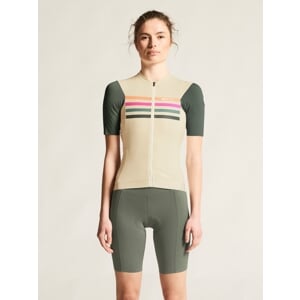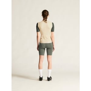 Cyklistický dres CRAFT Endur Training je primárně určen pro náročné cyklistky, které tvrdě trénují několikrát týdně. Je vyroben z vysoce funkčního, strečového a příjemného materiálu, který skvěle odvádí vlhkost od těla pryč a udržuje tělo v optimální provozní teplotě i při velmi intenzivní jízdě. Ergonomický střih se maximálně přizpůsobí pozici cyklistky na kole, takže výrazně přispěje ke komfortnímu pocitu v průběhu celého švihu. Na zádech jsou čtyři kapsy, z toho jedna je uzavíratelná zipem. Spodní lem dresu je ukončen pružnou gumou se silikonovým potiskem z vnitřní strany.