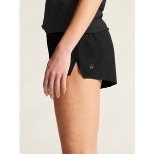 Elitní běžecké šortky CRAFT Race Day Split 2 svými vlastnostmi přispívají k překonávání limitů nejen elitním atletkám, ale i ostatním běžkyním, které hledají mimořádný produkt bez kompromisů. Jsou vyrobeny z vysoce funkčního materiálu s mimořádně efektivním odvodem vlhkosti, který zároveň disponuje vysokou prodyšností. Tu navíc podporuje perforace po stranách. Velmi lehké, elastické meshové vnitřní boxerky jsou také mimořádně prodyšné. Volnost pohybu i při velmi vysoké intenzitě umožňují vysoké rozparky po stranách vnějších šortek.
