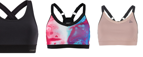 Podprsenky CRAFT vynikajú predovšetkým účinným odvodom potu a ponúkajú sa vo variantoch so strednou a nižšou podporou.